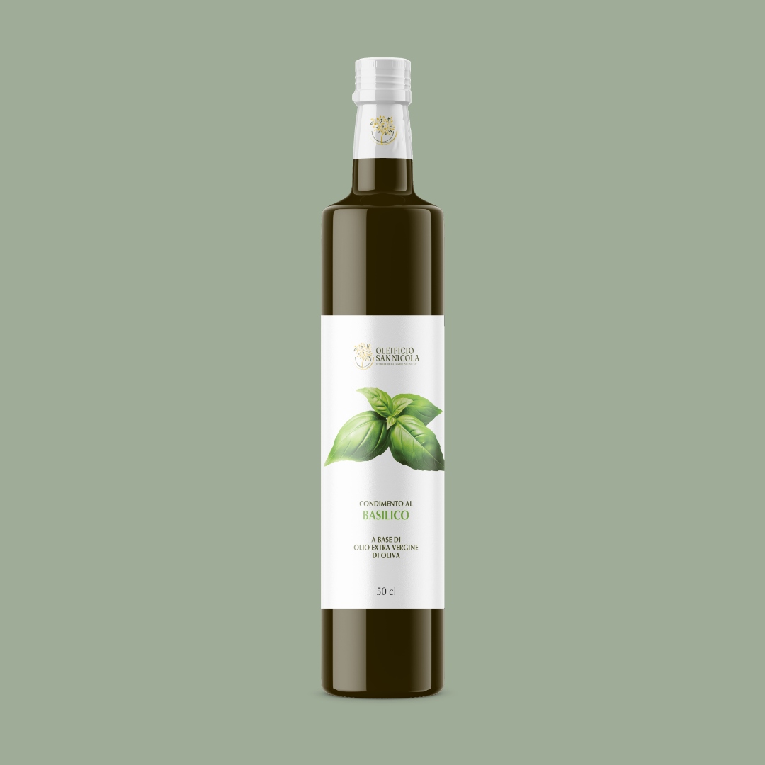 Scopri l’eccellenza dell’Olio Extravergine di Oliva Aromatizzato al Basilico dell’Oleificio San Nicola, una creazione artigianale unica che unisce la tradizione olearia irpina con l’aroma intenso e fresco del basilico mediterrano. Questo pregiato olio extravergine, ottenuto dalla spremitura a freddo delle migliori olive irpine, viene delicatamente aromatizzato con basilico selezionato, creando un condimento dall’aroma inconfondibile e dal sapore autentico.